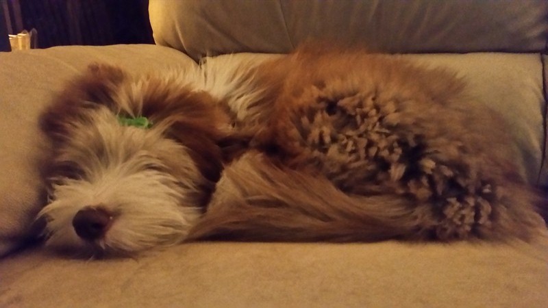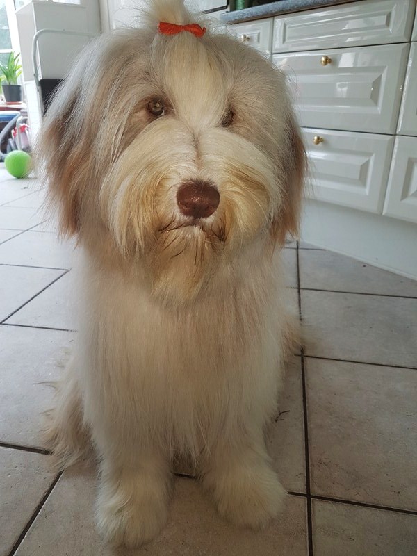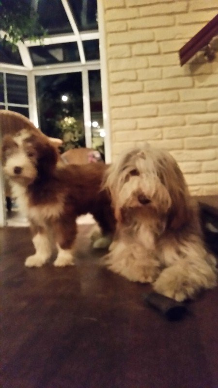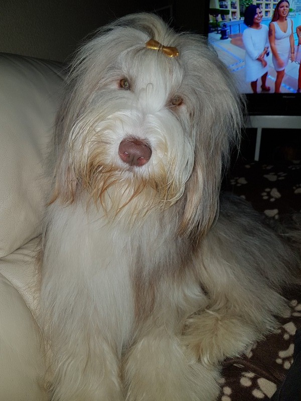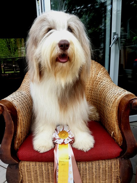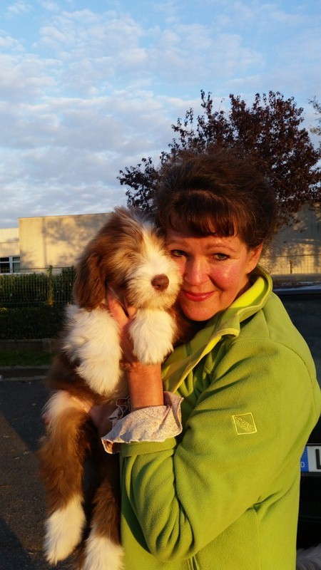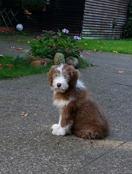 But for now, she is absolutely amazing with her puppy-charm. I am thrilled with her social skills. All the other Beardies in the house accepted her straight away, and from the first moment on, she lives here, as if she knows she belongs. Just dandy!!