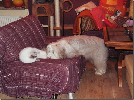 She lives with her half-sister, Kruemel and a big, gentle Great Dane mix, Josie-Joie