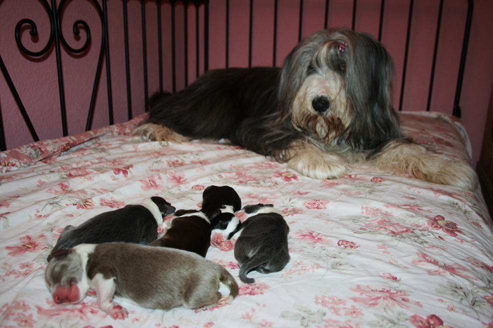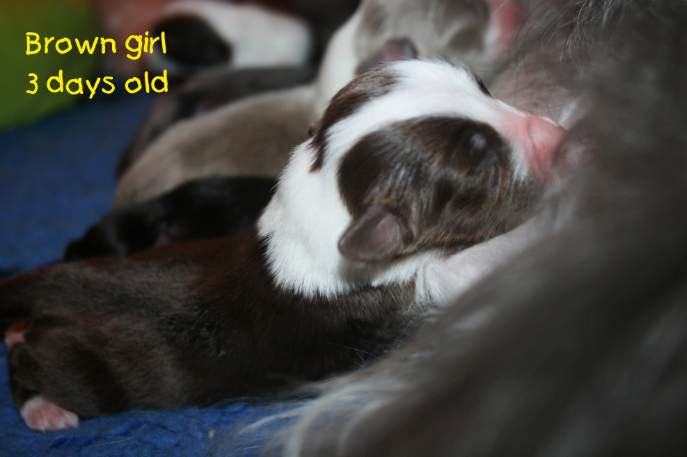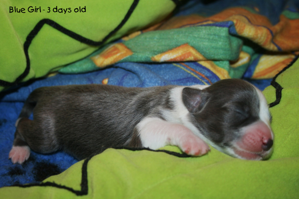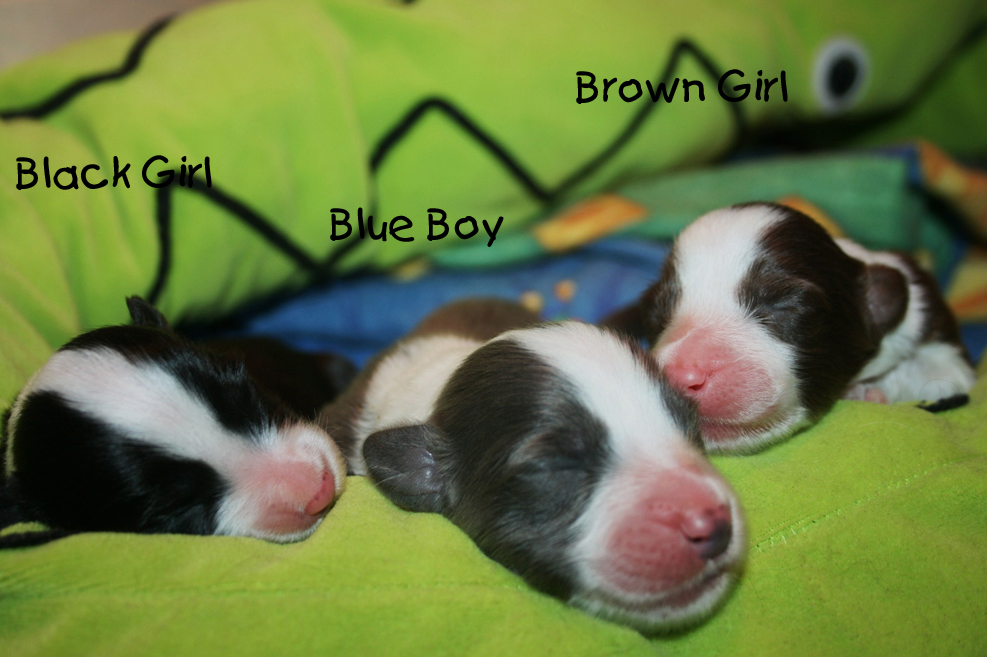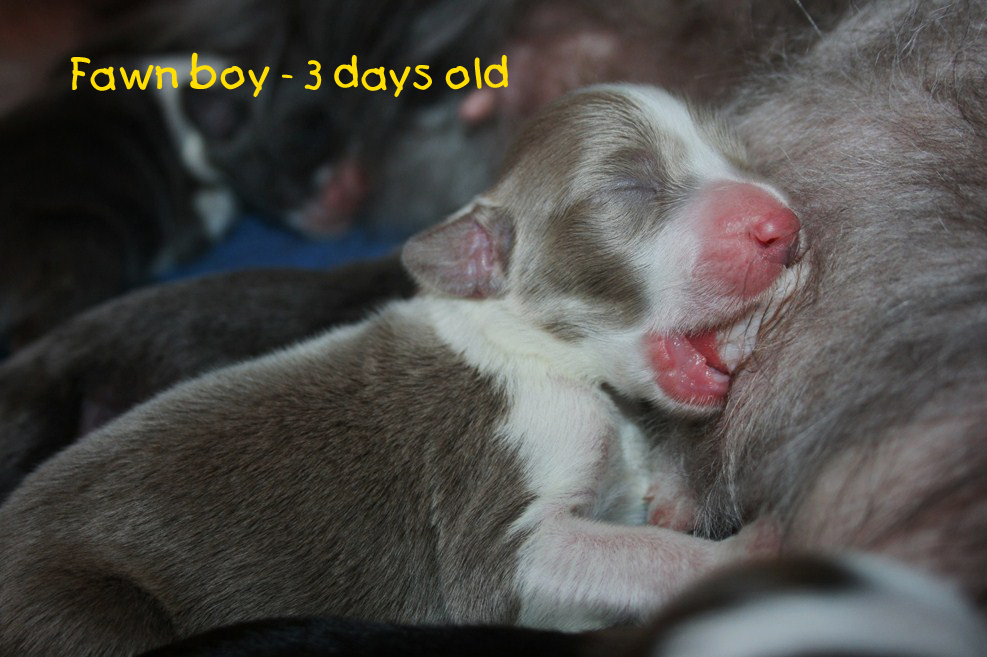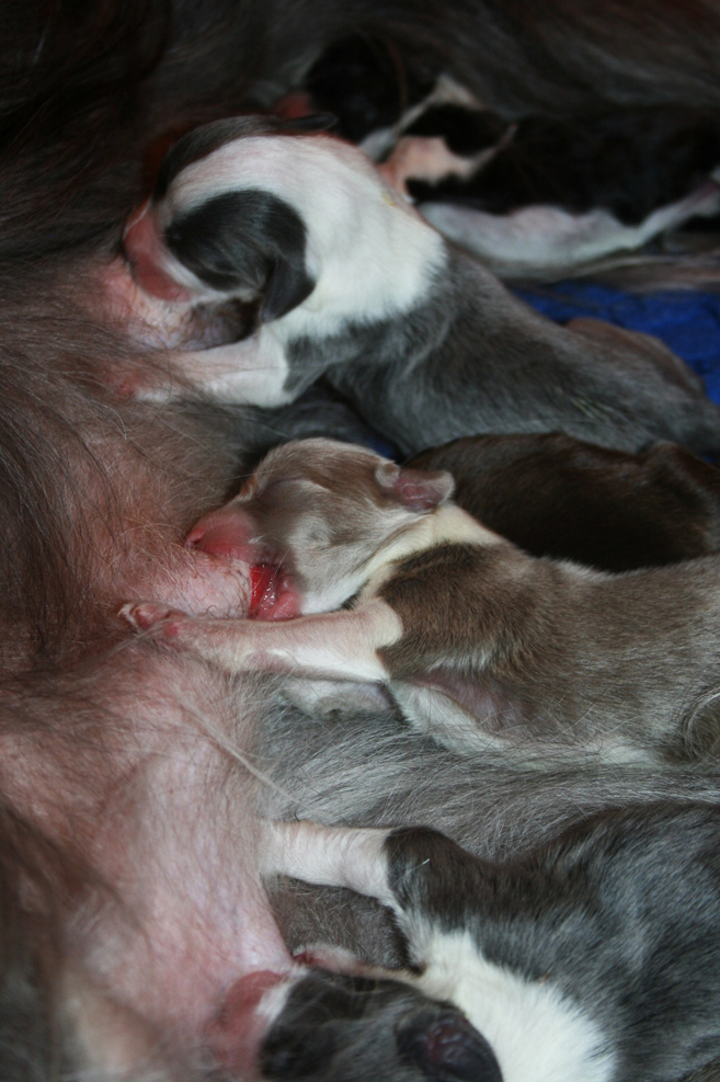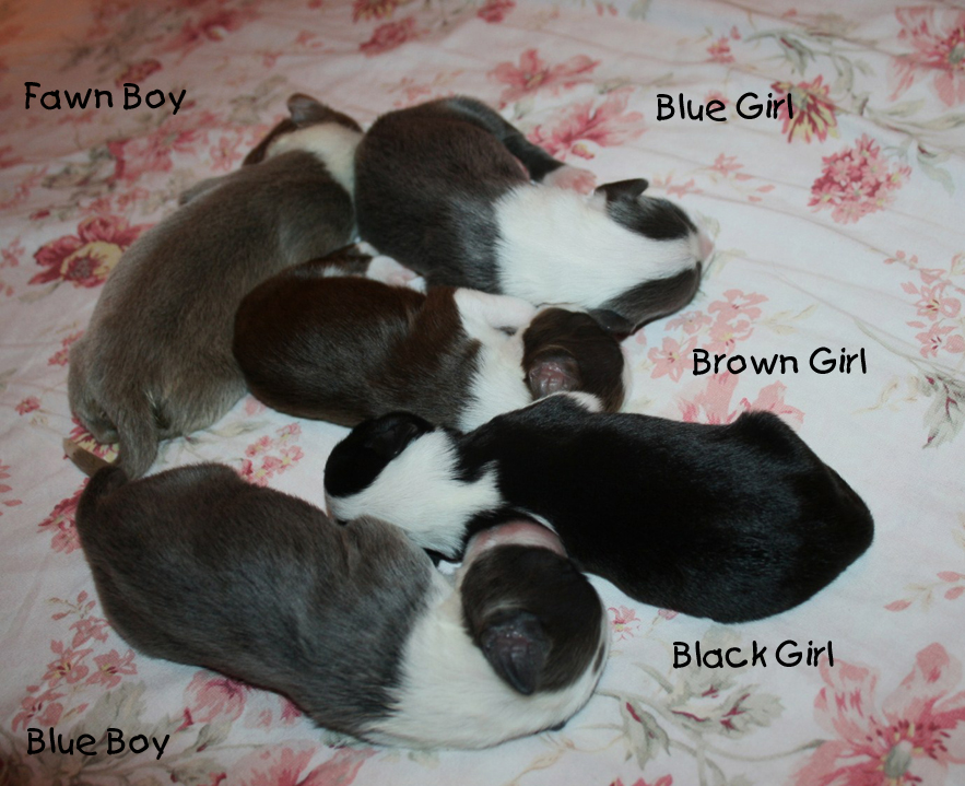 Hayley blessed us with 2 boys (fawn & blue) as well as 3 girls (black, blue & brown). So to say, a rainbow litter!