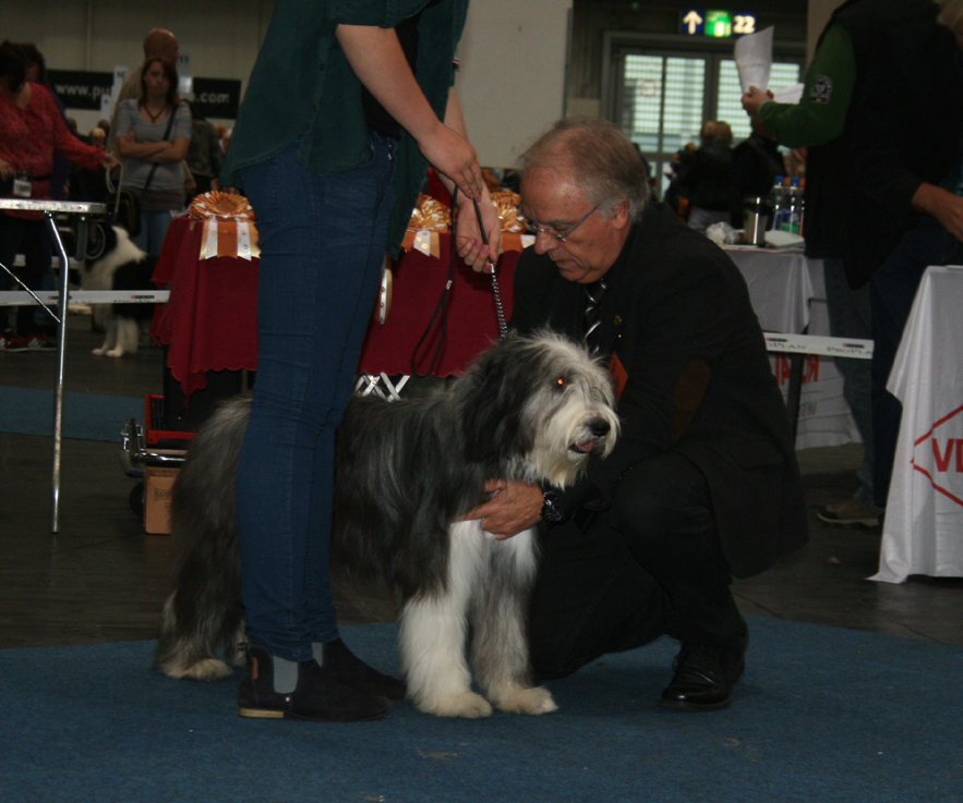 Here is she nearly 9 months old. Motte was entered in the dog show in Hannover and was awarded "Very Promising Youngster"! We are very proud of this pretty little lady!