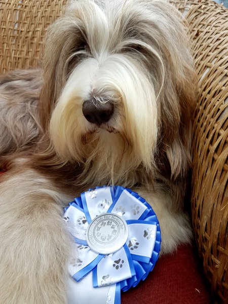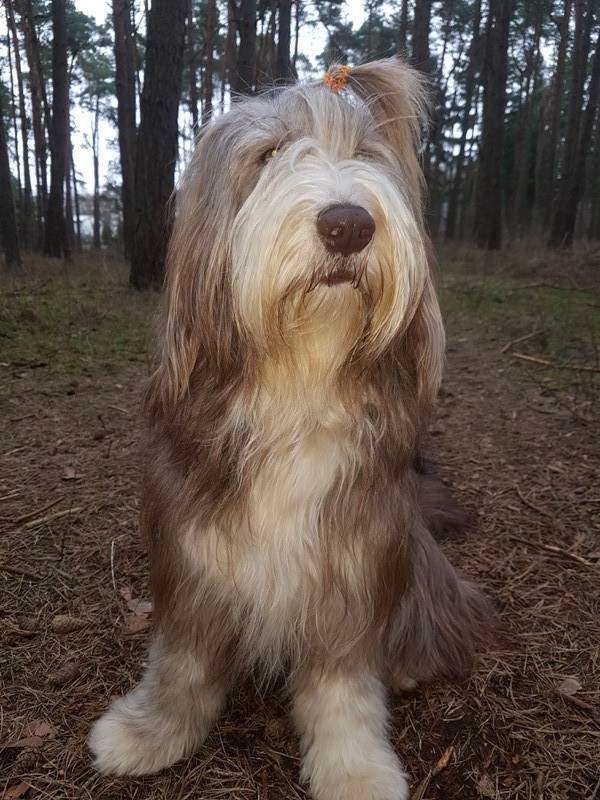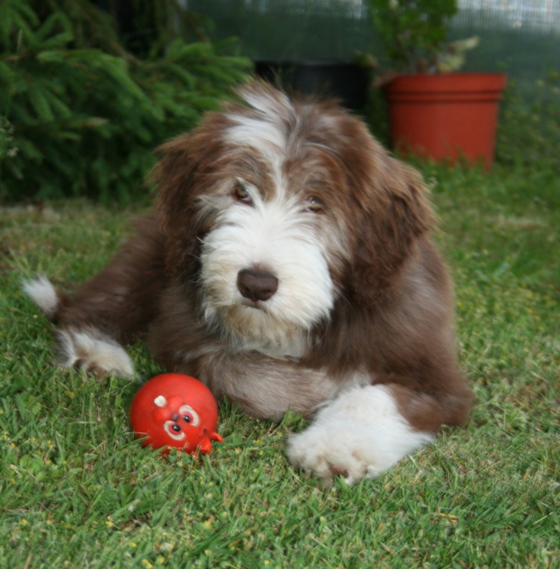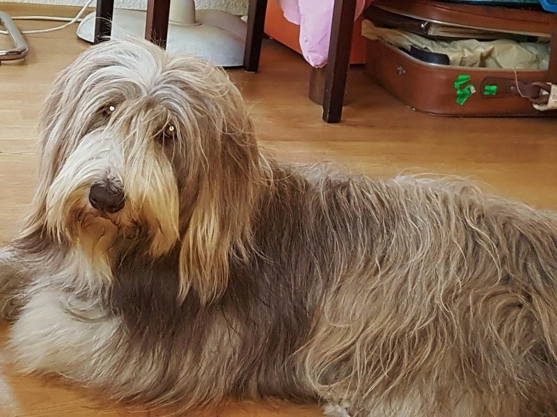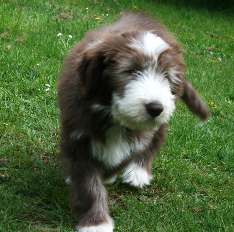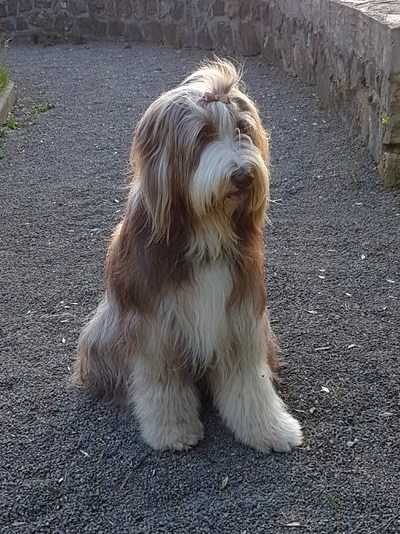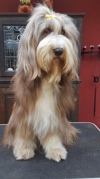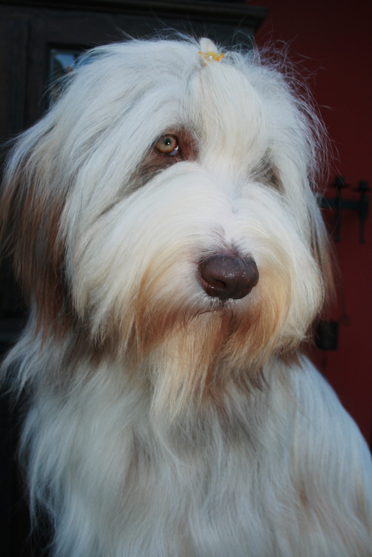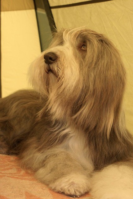 Little Pearl is now 8 months old and not so little anymore! The months have past and she has grown into quite a beauty. Her coat has lightened up (as young Beardie coats do), but the texture is fantastc and easy to groom.
