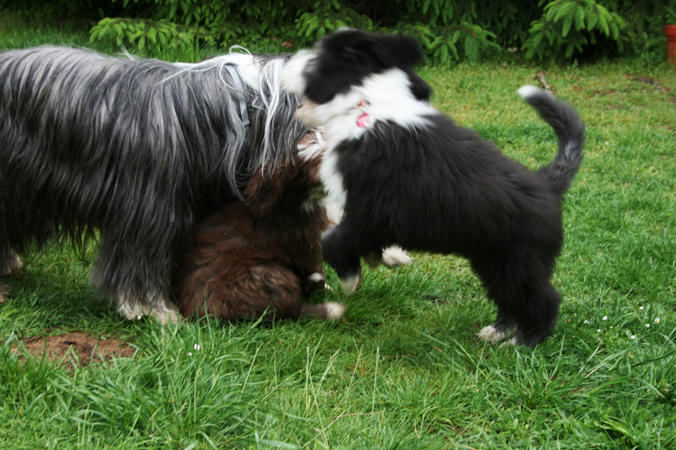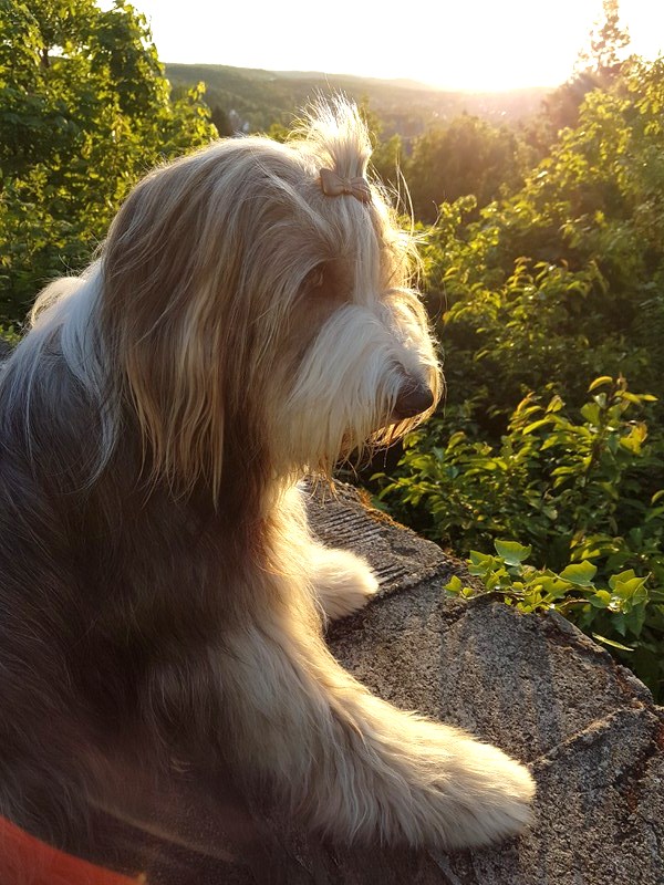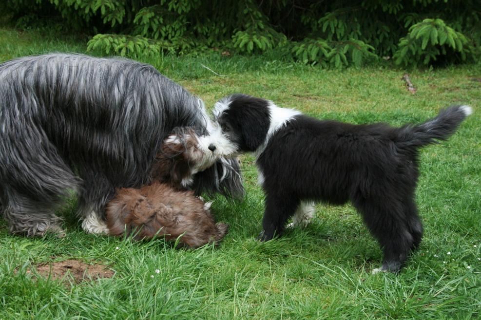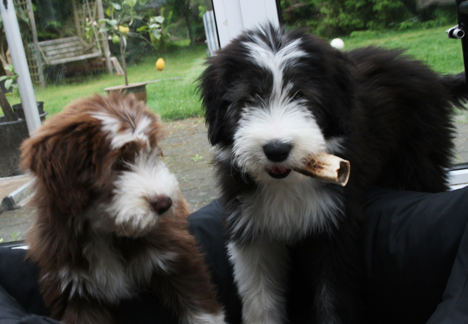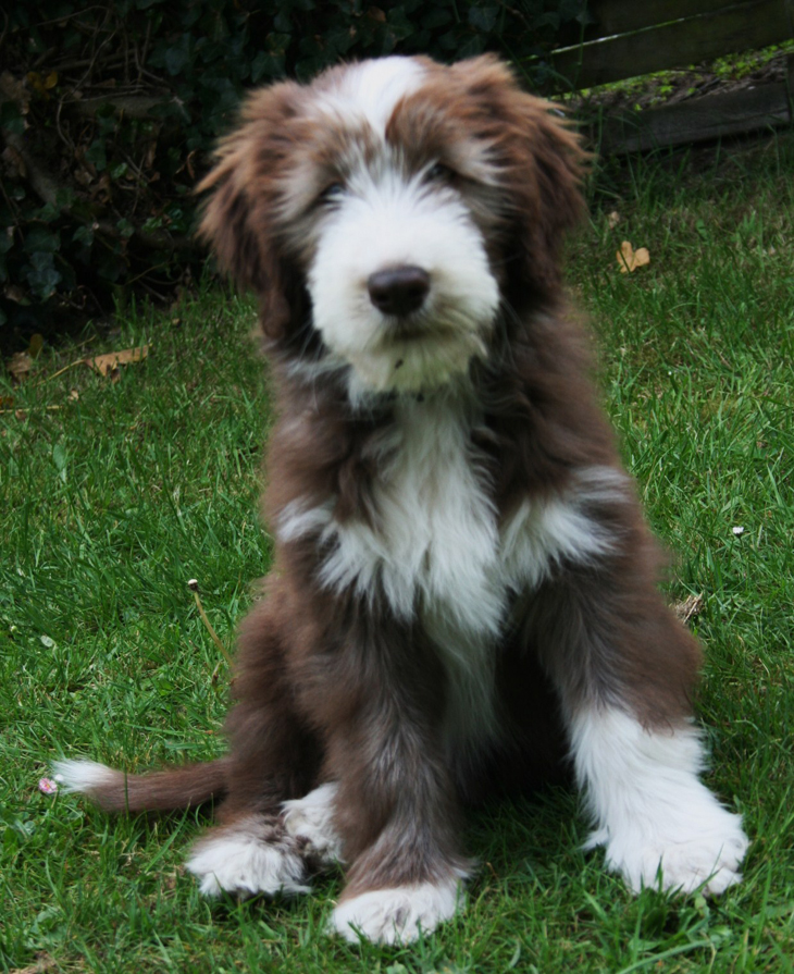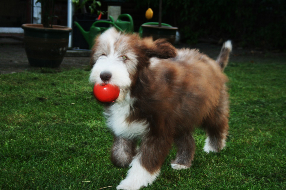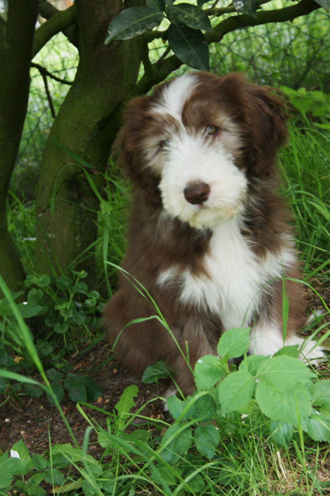 Little Pearl is now 8 months old and not so little anymore! The months have past and she has grown into quite a beauty. Her coat has lightened up (as young Beardie coats do), but the texture is fantastc and easy to groom.