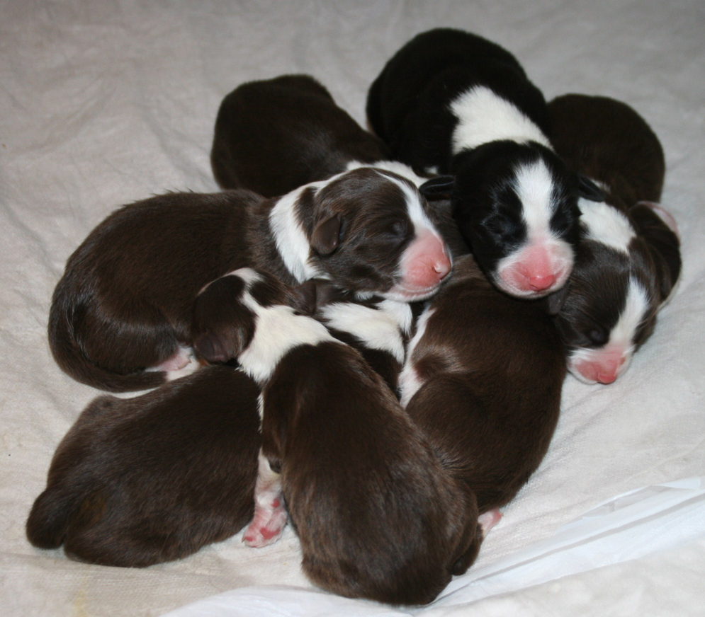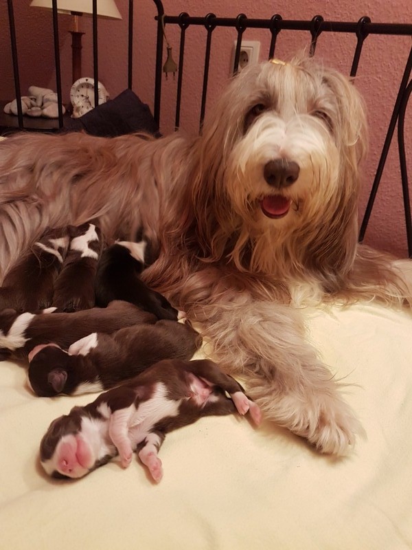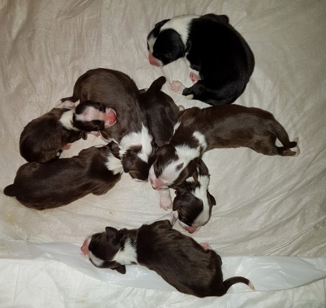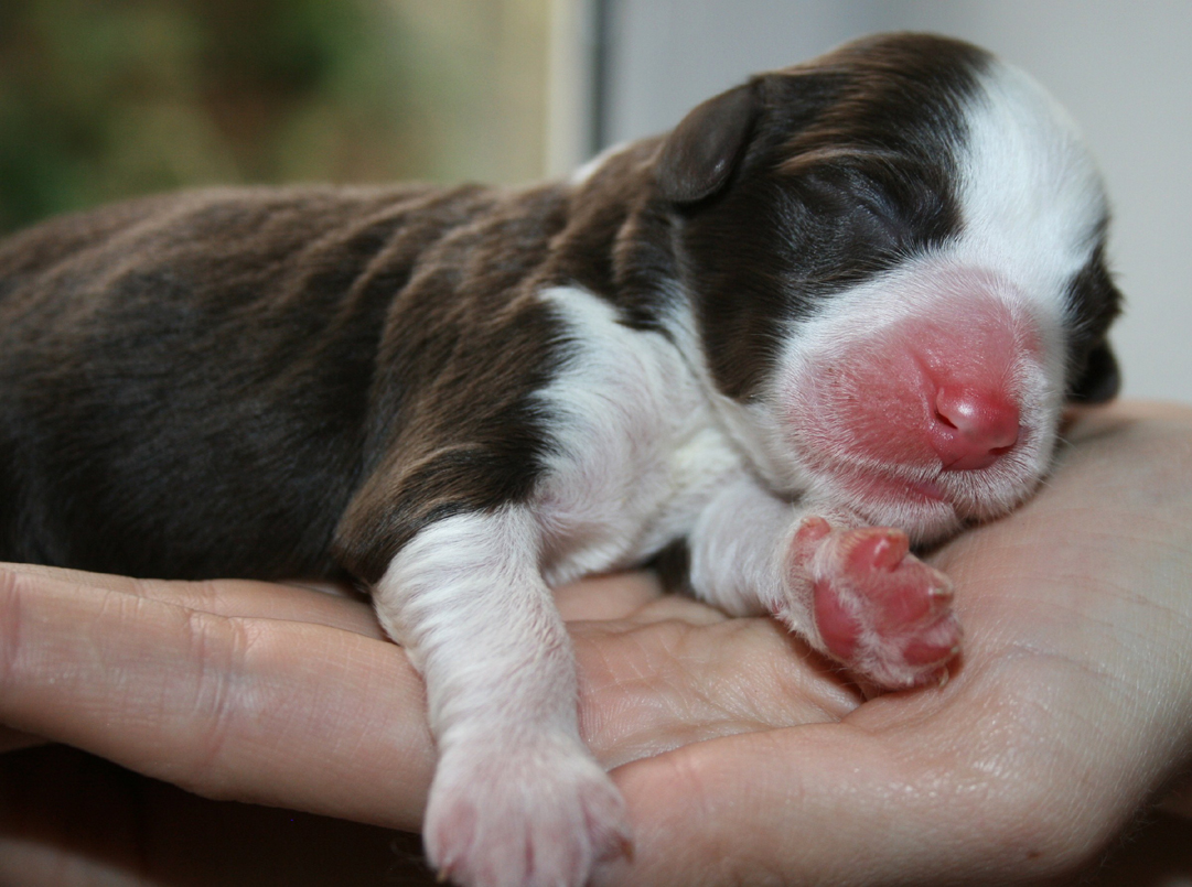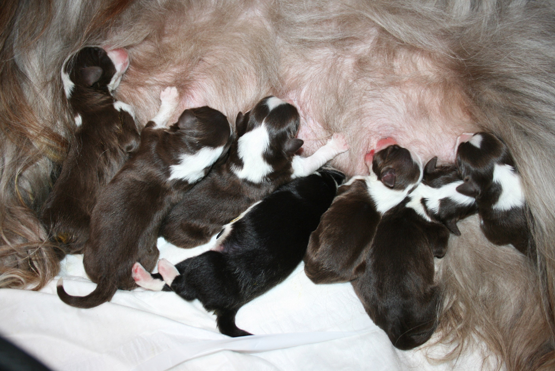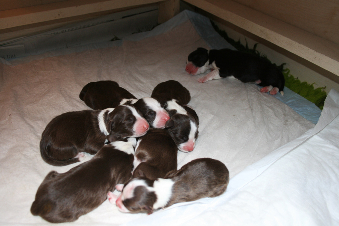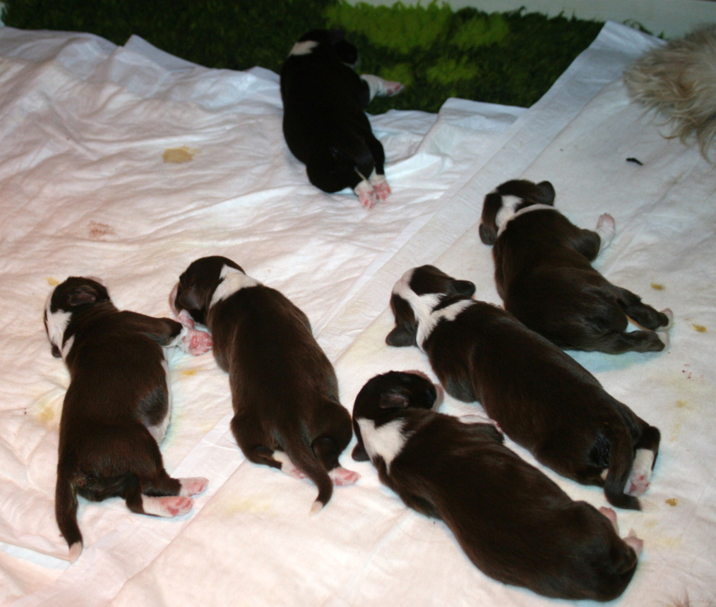 Actually, she bore 7 pups but one very small brown boy was born without an anus. So, accompanied with many tears, we had to let him go to the angels.