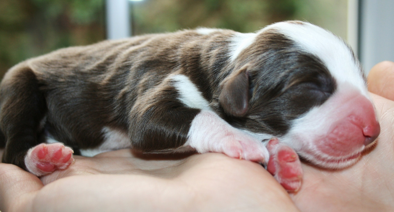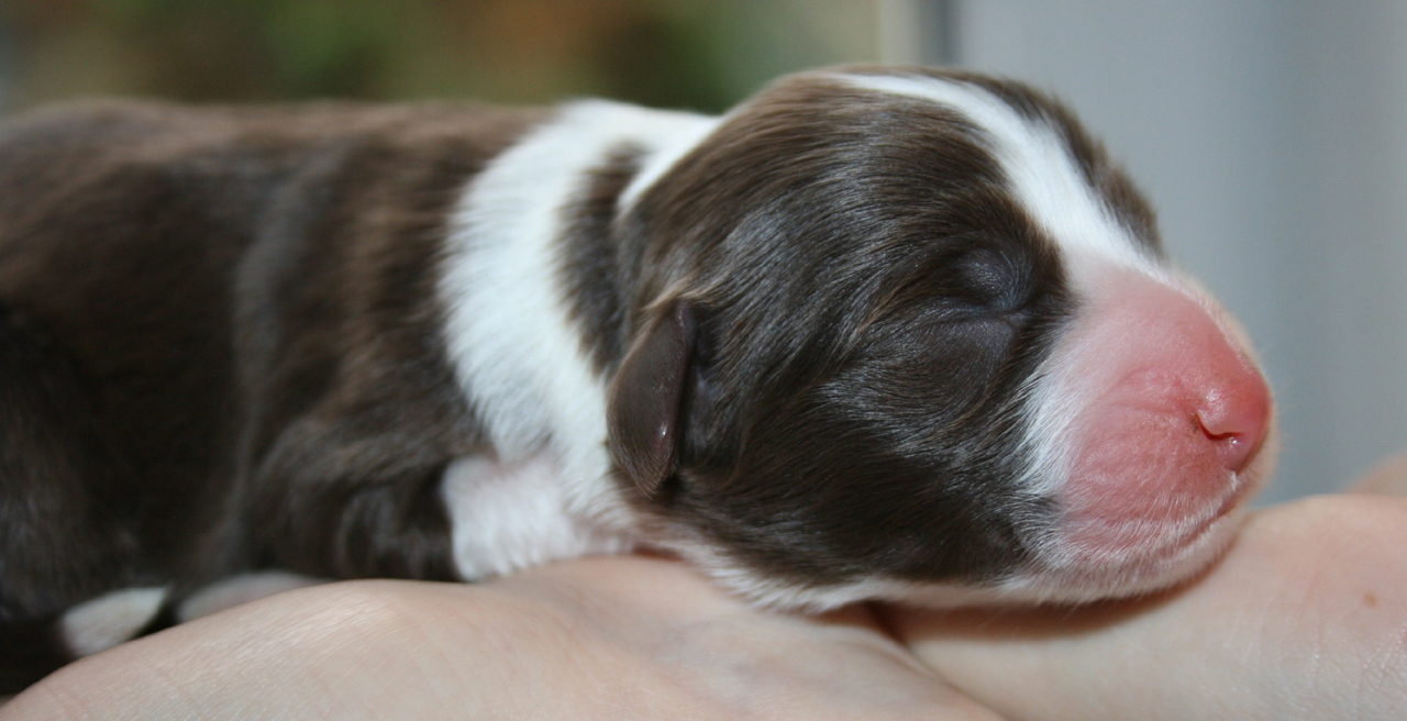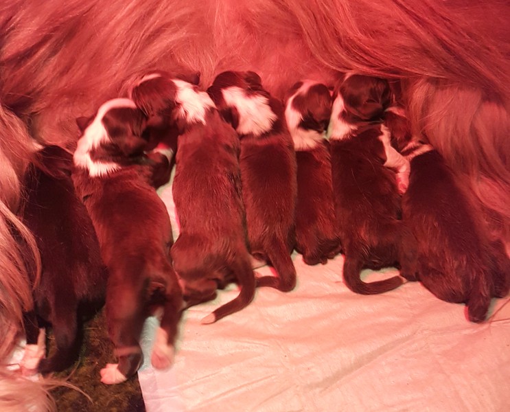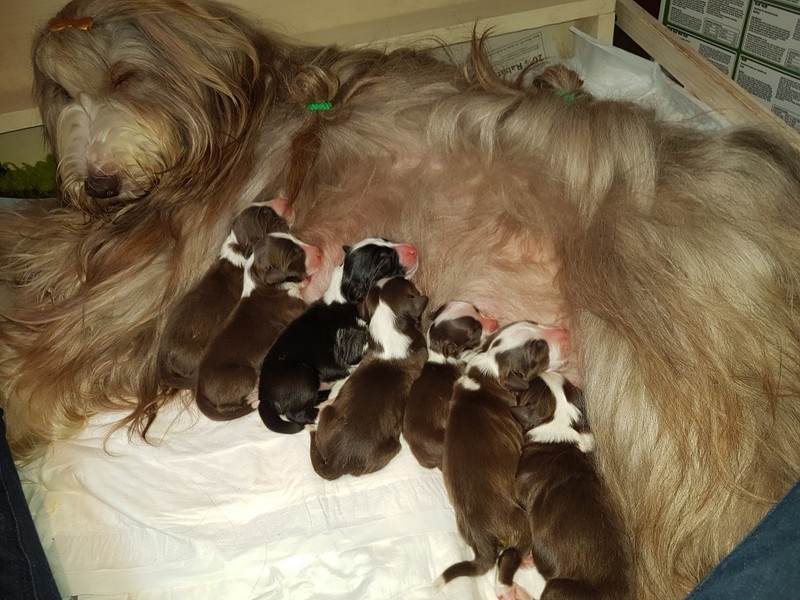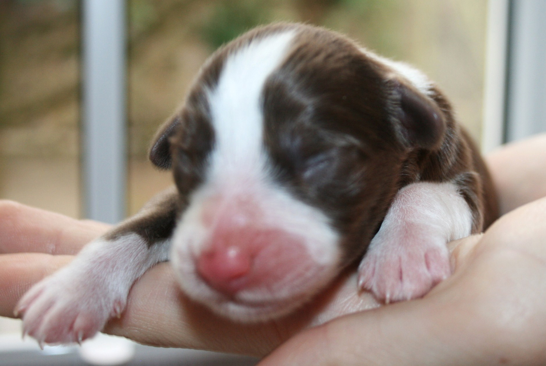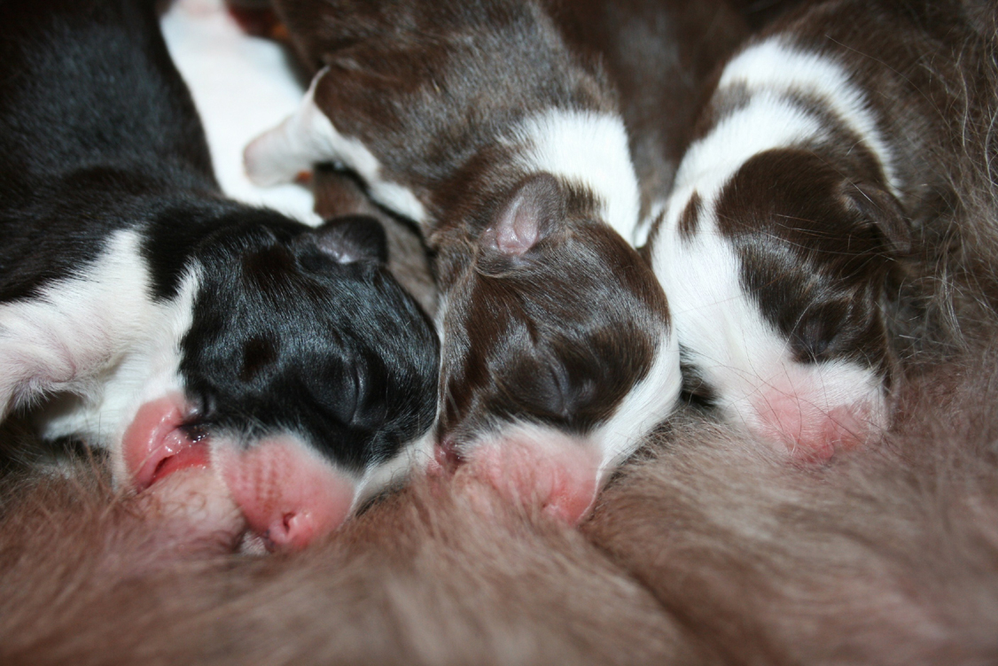 Actually, she bore 7 pups but one very small brown boy was born without an anus. So, accompanied with many tears, we had to let him go to the angels.
