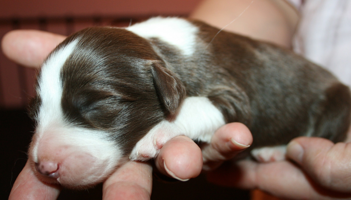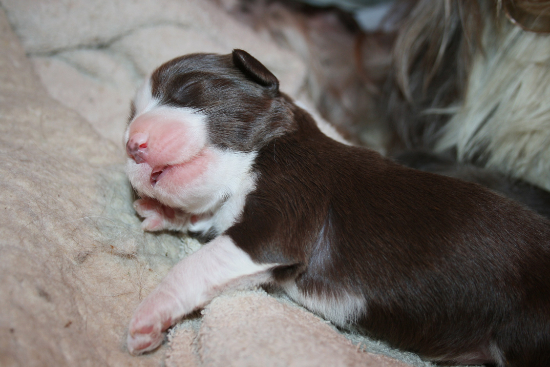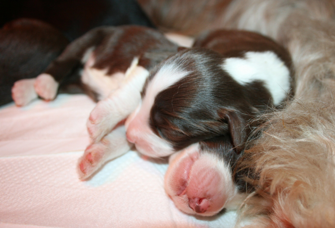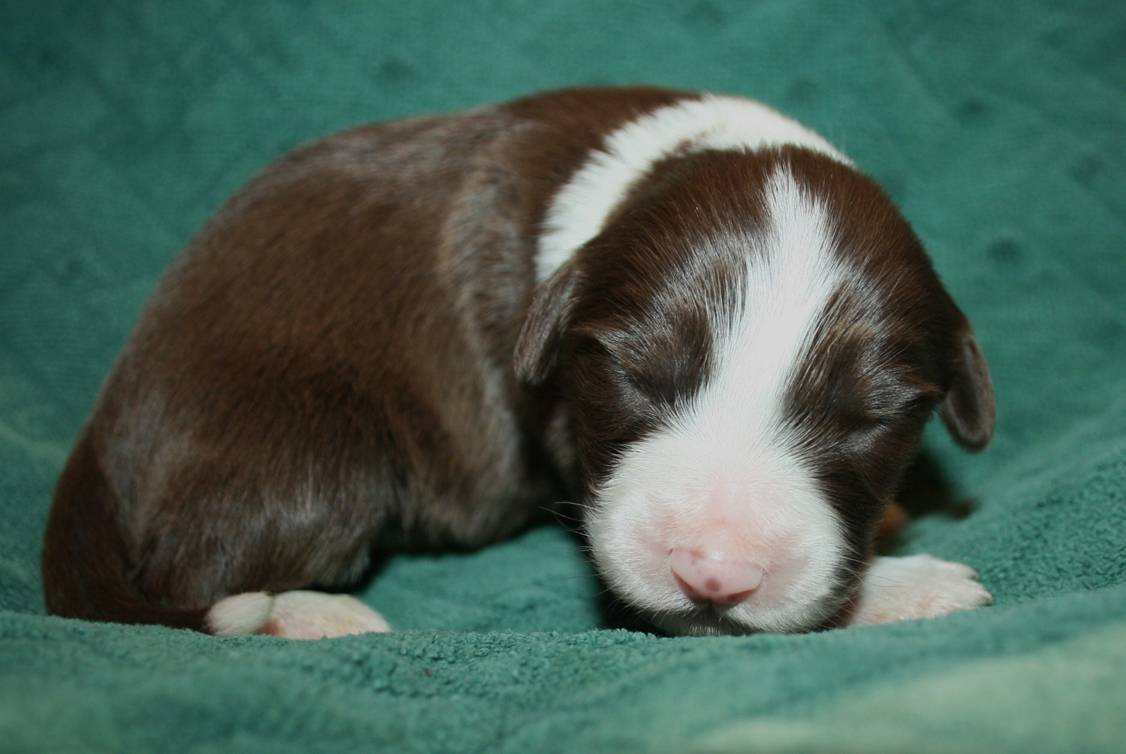 Lux--Montenegro Ch. Beardmarked's Sight for Sore Eyes brown/white HD:A, Cat free |