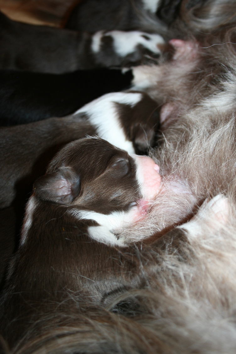 They have grown sooooo much in the first week and already gave doubled their weight! They are beginning to crawl about (with amazing speed), to find a little sibling to cuddle with or when the "milk-bar" comes into the box - Mommy-Pearl!