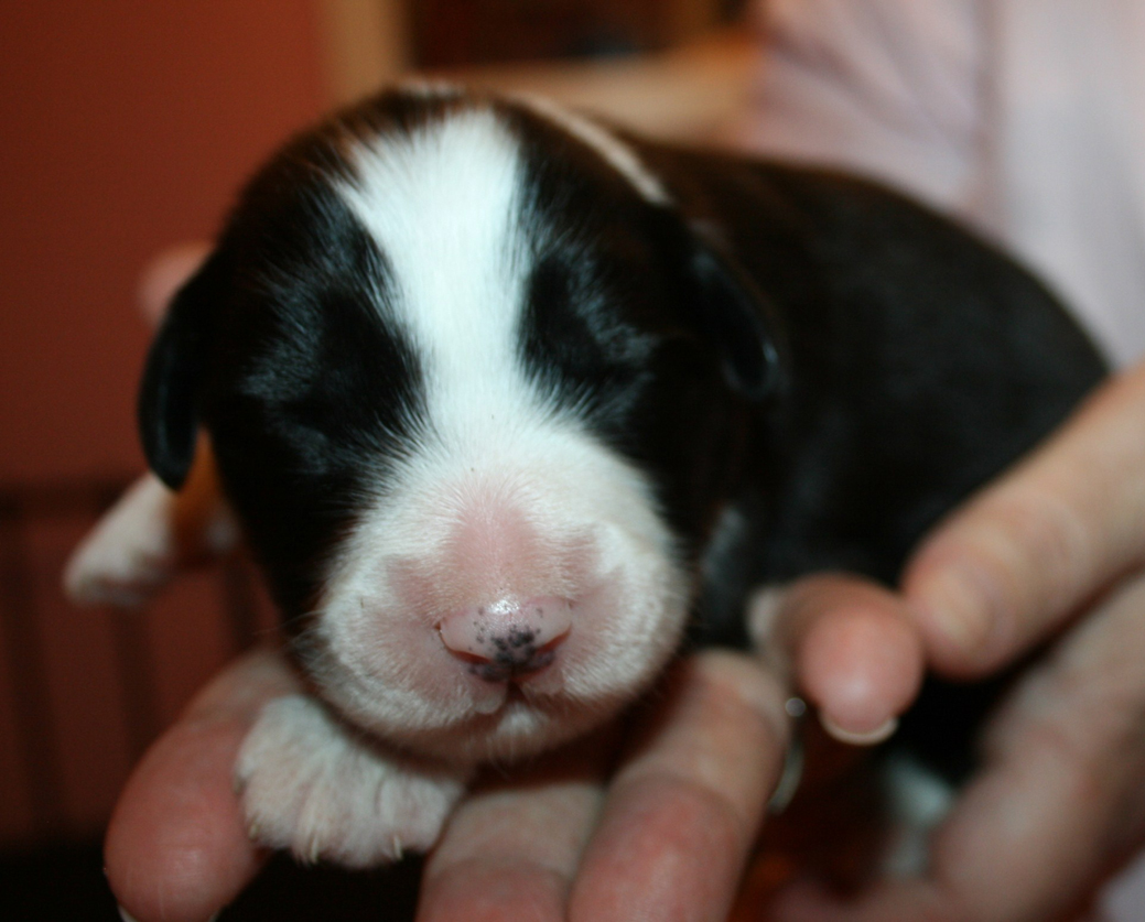 Int-B-Ger-VDH-NL-LUX Ch. Lärkängens at Firstprizebear's black/white HD: B DNA-CEA/CH-CLEAR |