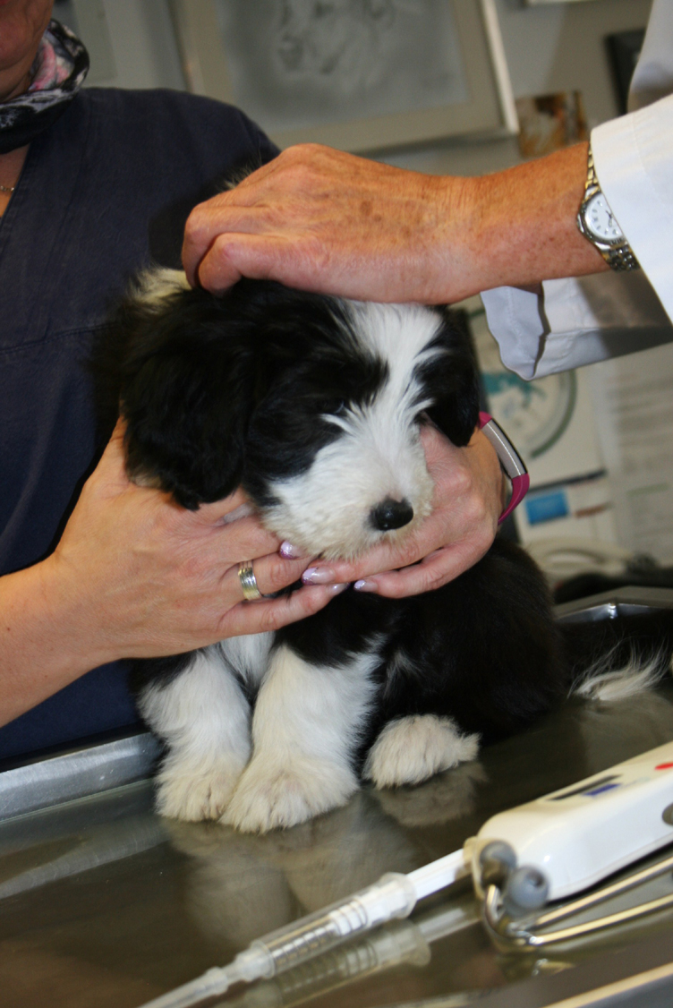 The little "R's" had their first innoculations and had their chips injected this past week. Boy, were they brave! Not a peep from any of them! The Doc was sure to give them delicious treats to take their attention away from those big, ol' needles!