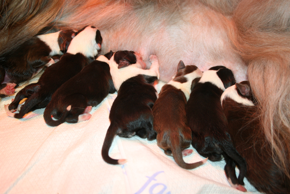 Then there are the 5 females. Two are brown/white and the other 3 are black/white.
