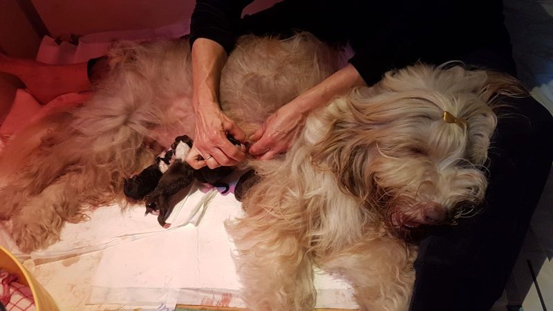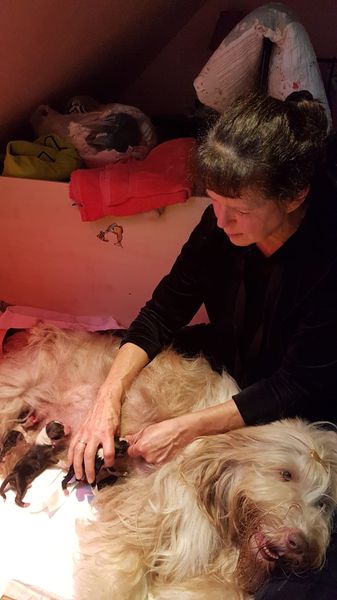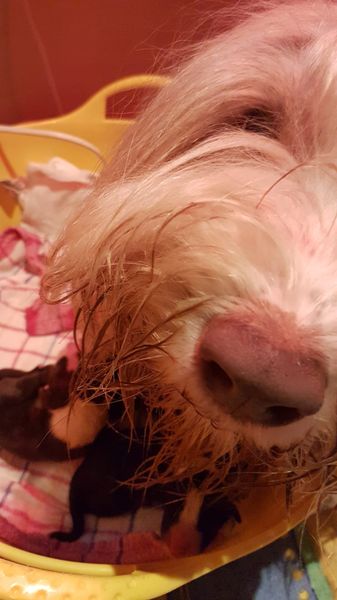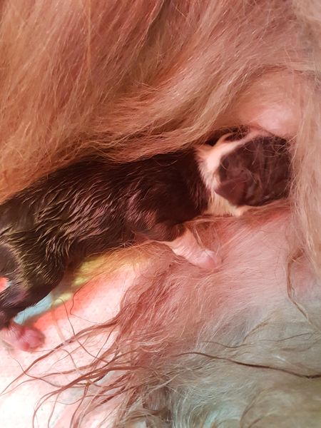 Harriet presented us with her first-born at around in the hallway by the front door...oops! Quickly, we took the little family upstairs to the ursery, where the rest of the litter was born.