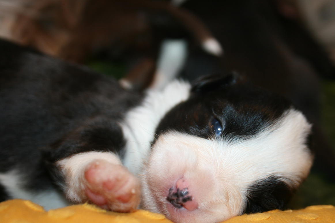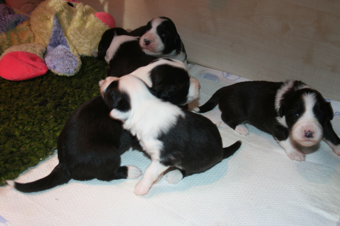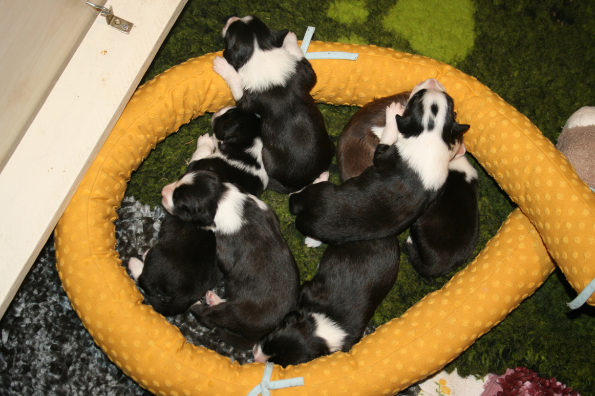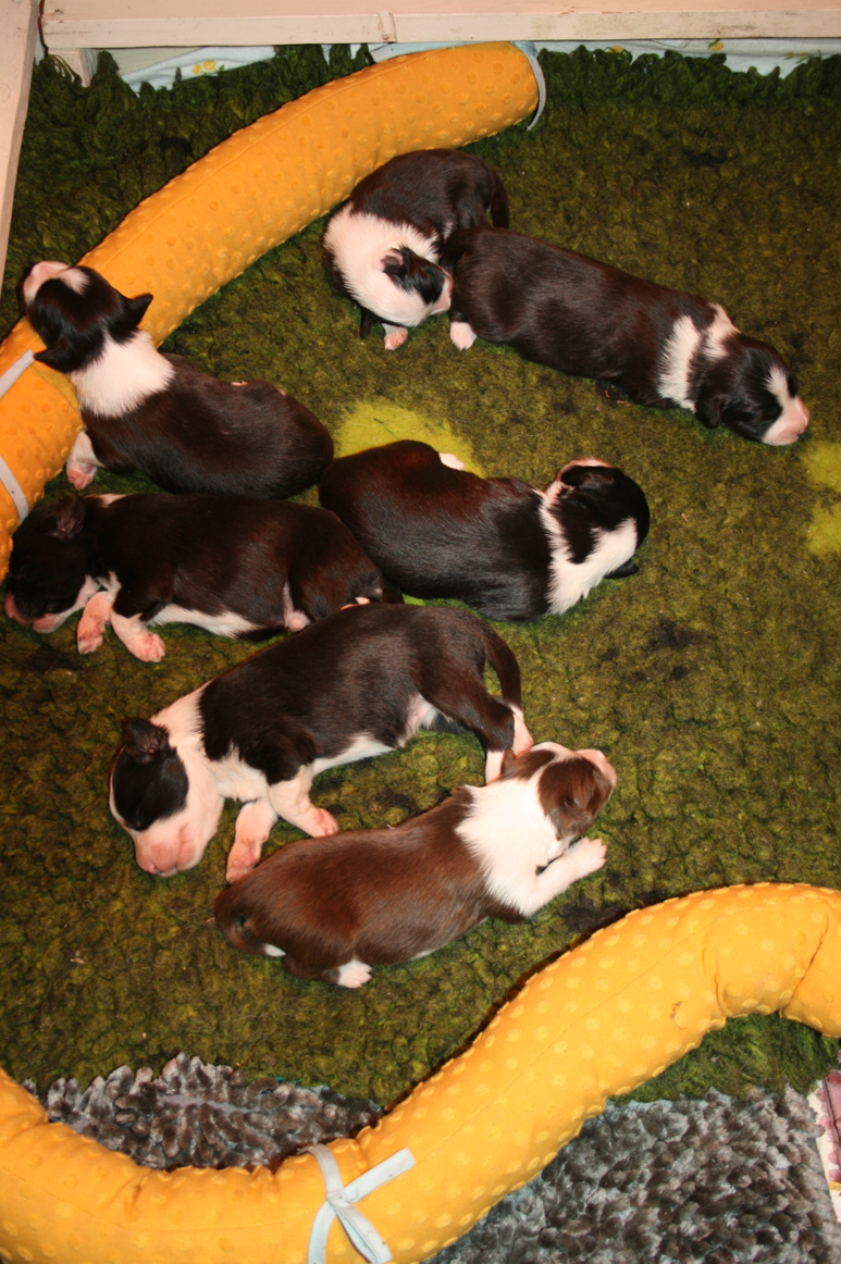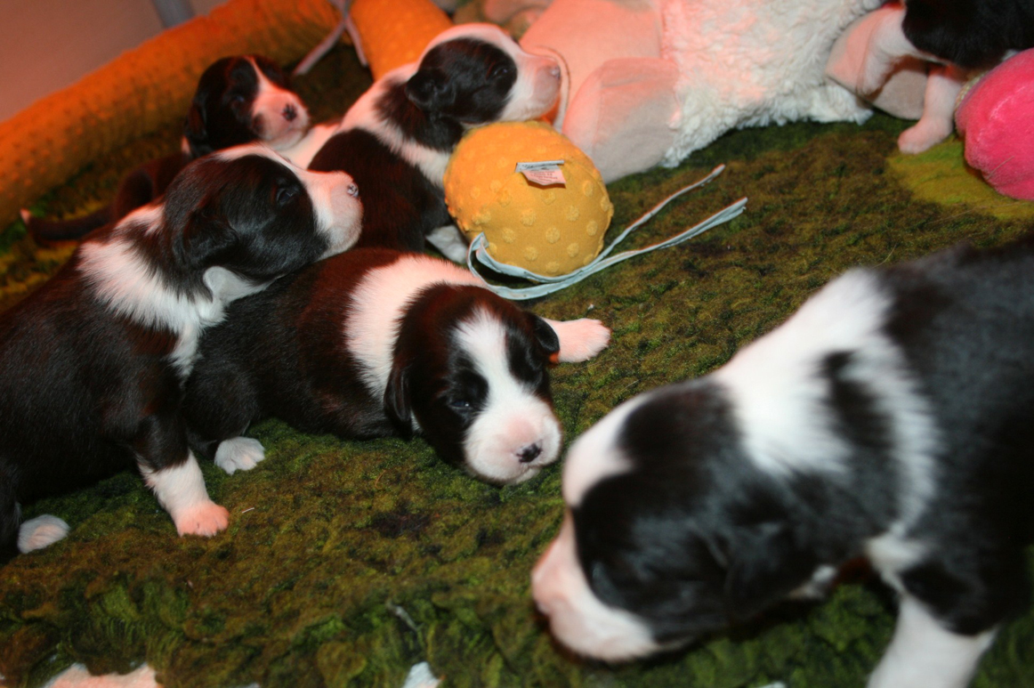 Harriets Welpen sind in der vergangenen Woche sprunghaft gewachsen. Es ist erstaunlich zu sehen, wie die Kleinen täglich ihre Entwicklung vorantreiben. Jetzt, wo sich ihre Augen geöffnet haben, laufen sie fleißig herum wie betrunkene Seeleute auf ihren wackeligen 4 Beinen!