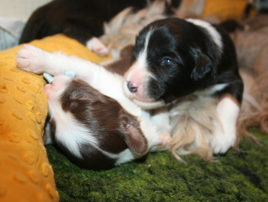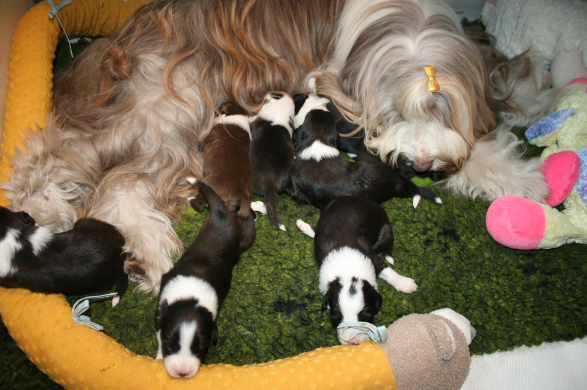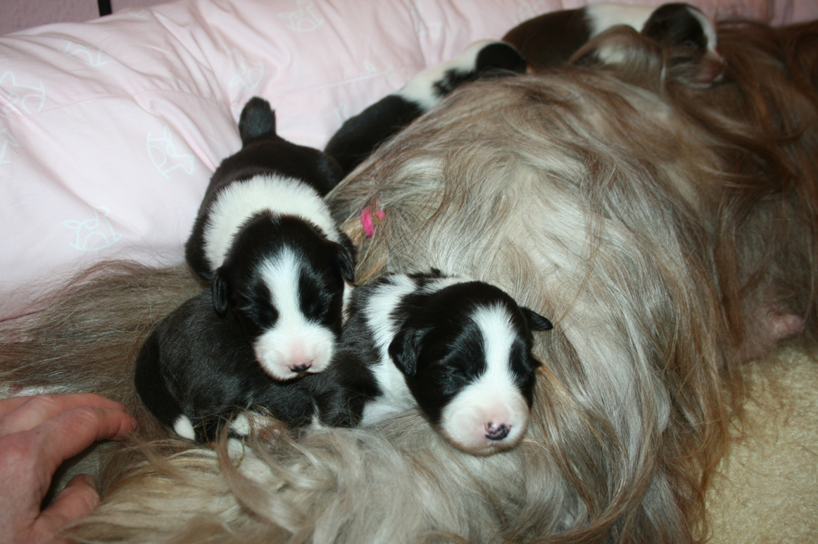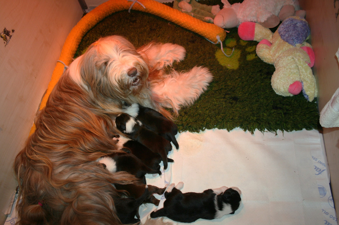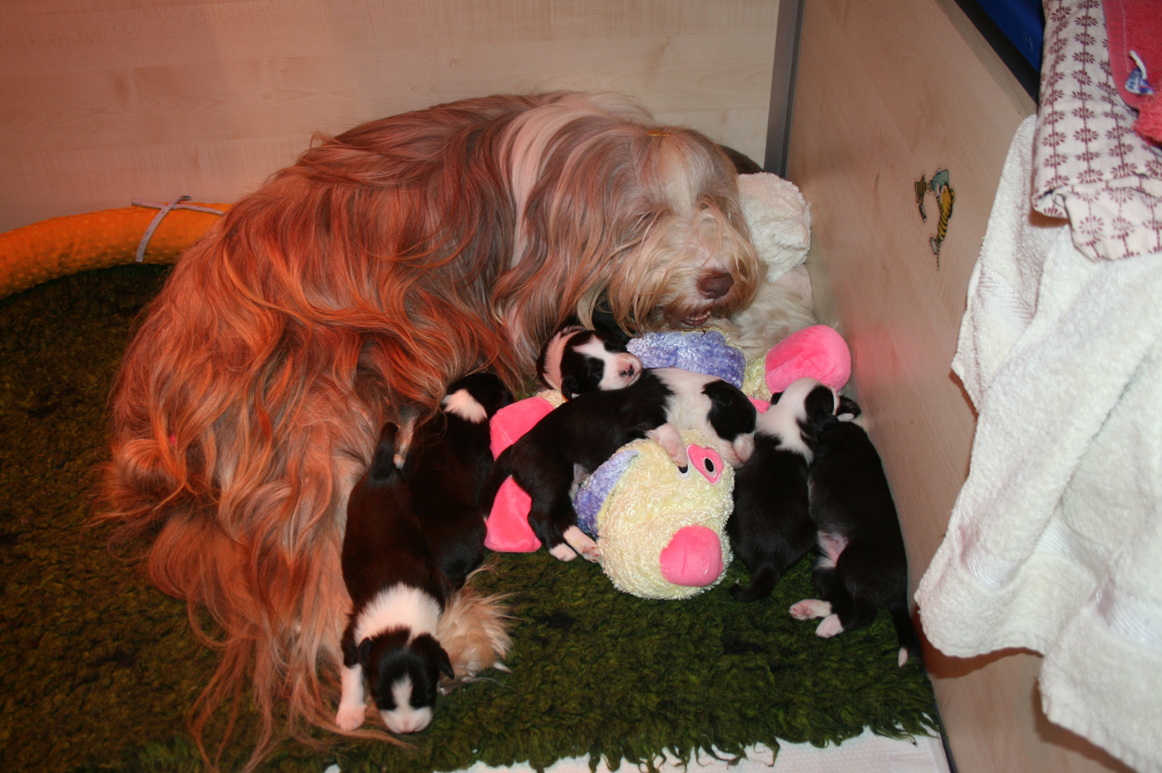 Die Zuchtwartin unseres Bearded Collie Clubs war hier, um den Wurf zu begutachten und jetzt haben sie ihre offiziellen Pedigreenamen!