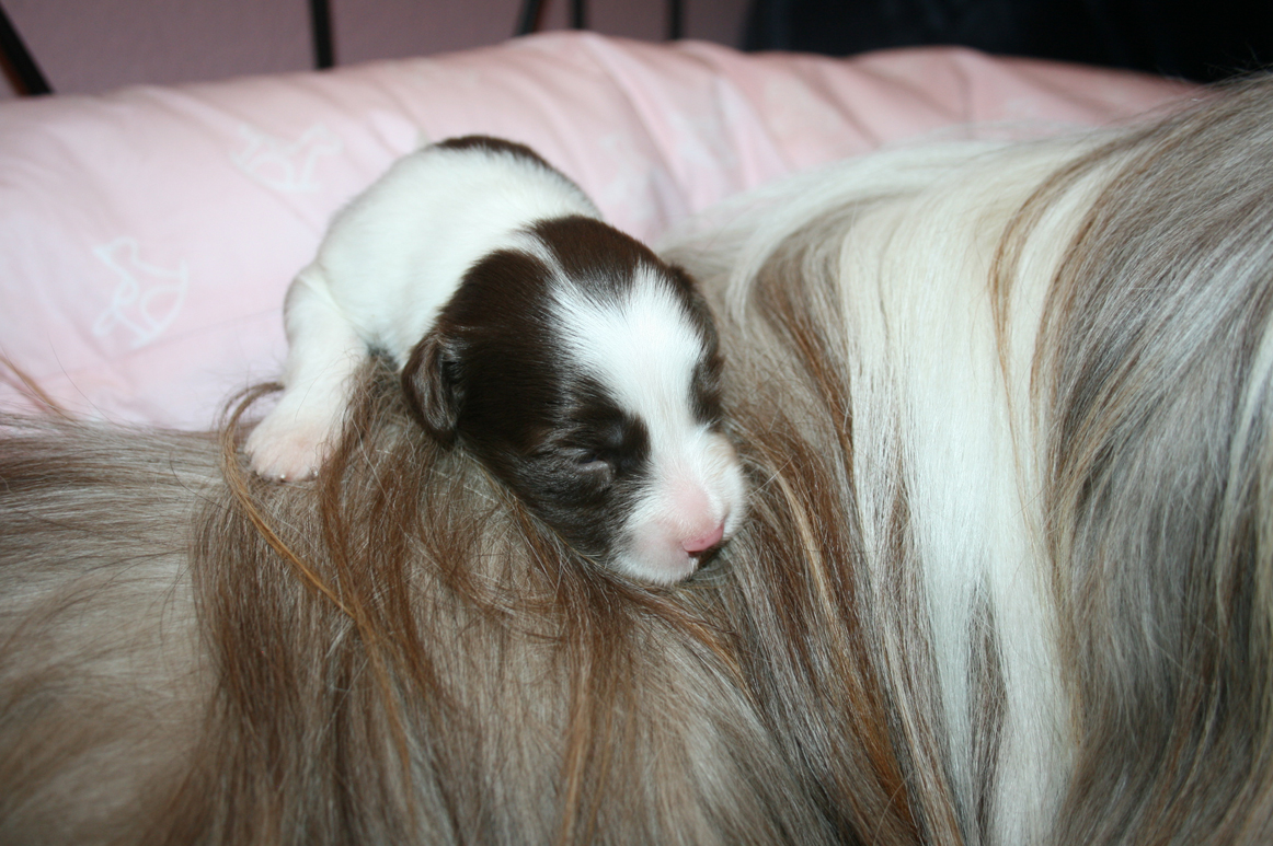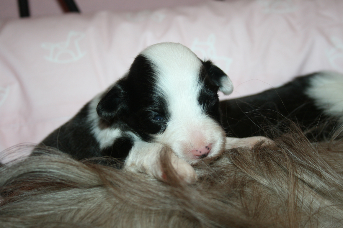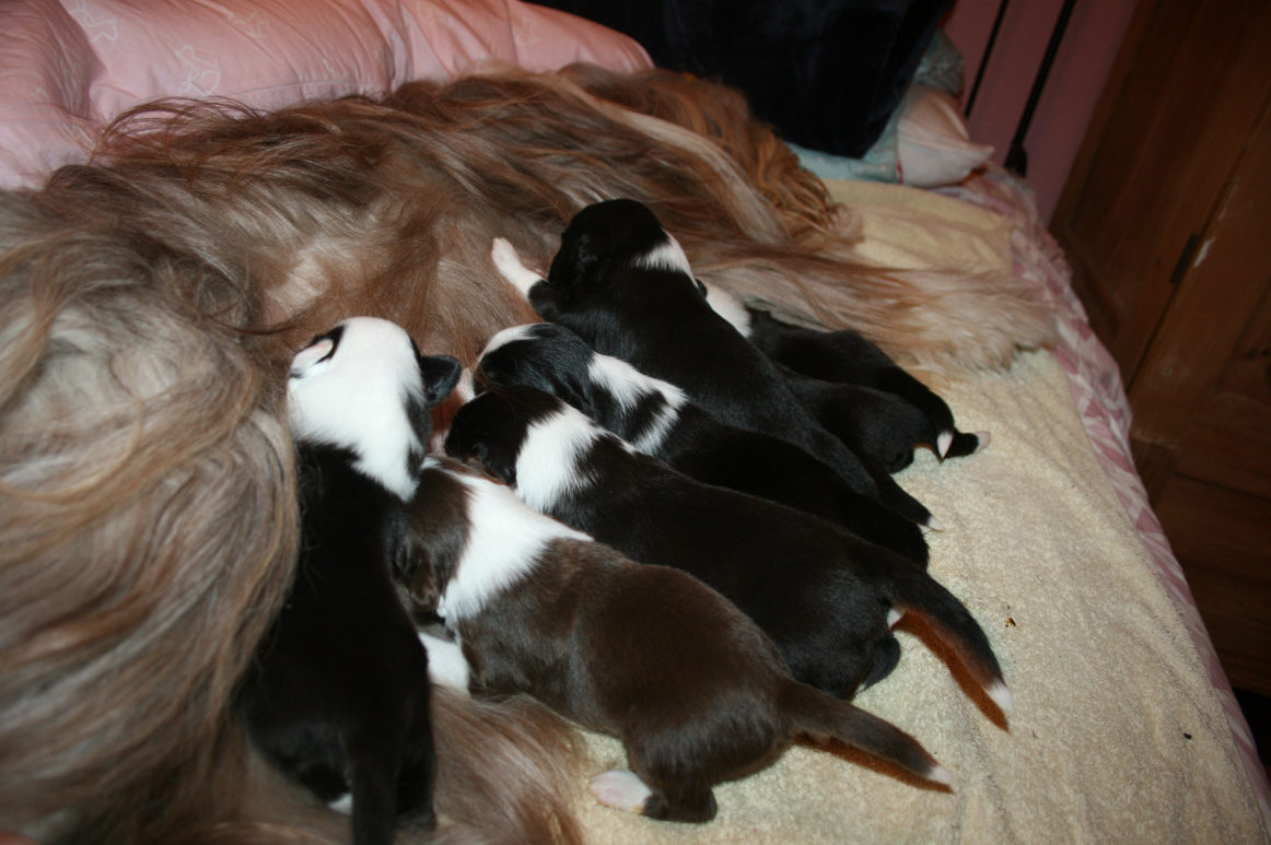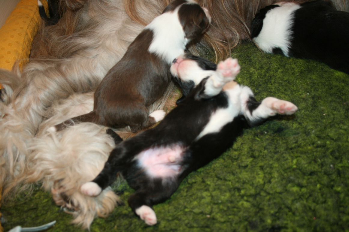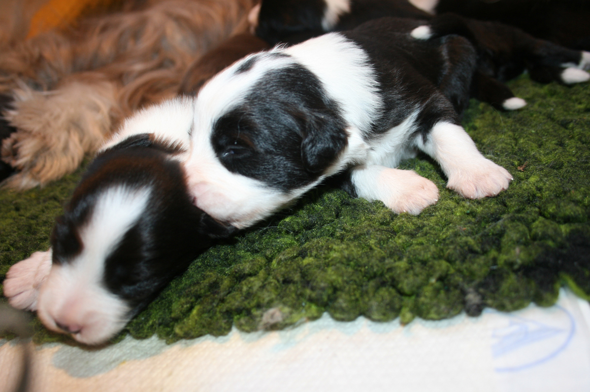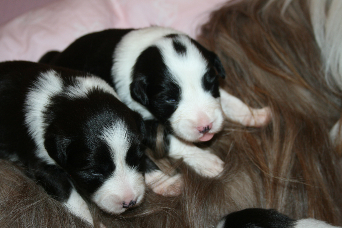 Die Zuchtwartin unseres Bearded Collie Clubs war hier, um den Wurf zu begutachten und jetzt haben sie ihre offiziellen Pedigreenamen!