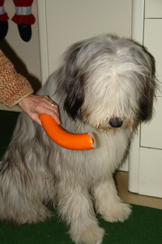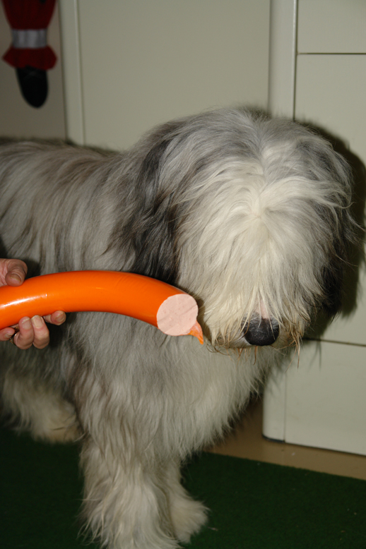 Kruemel sceptically eyes his birthday-sausage.....!