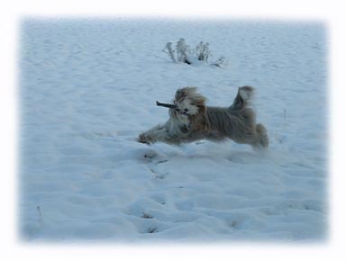Jeannie loooooves this unusual, hard north German winter. Snow is the perfect thing for all Beardies. They just "flip out"!