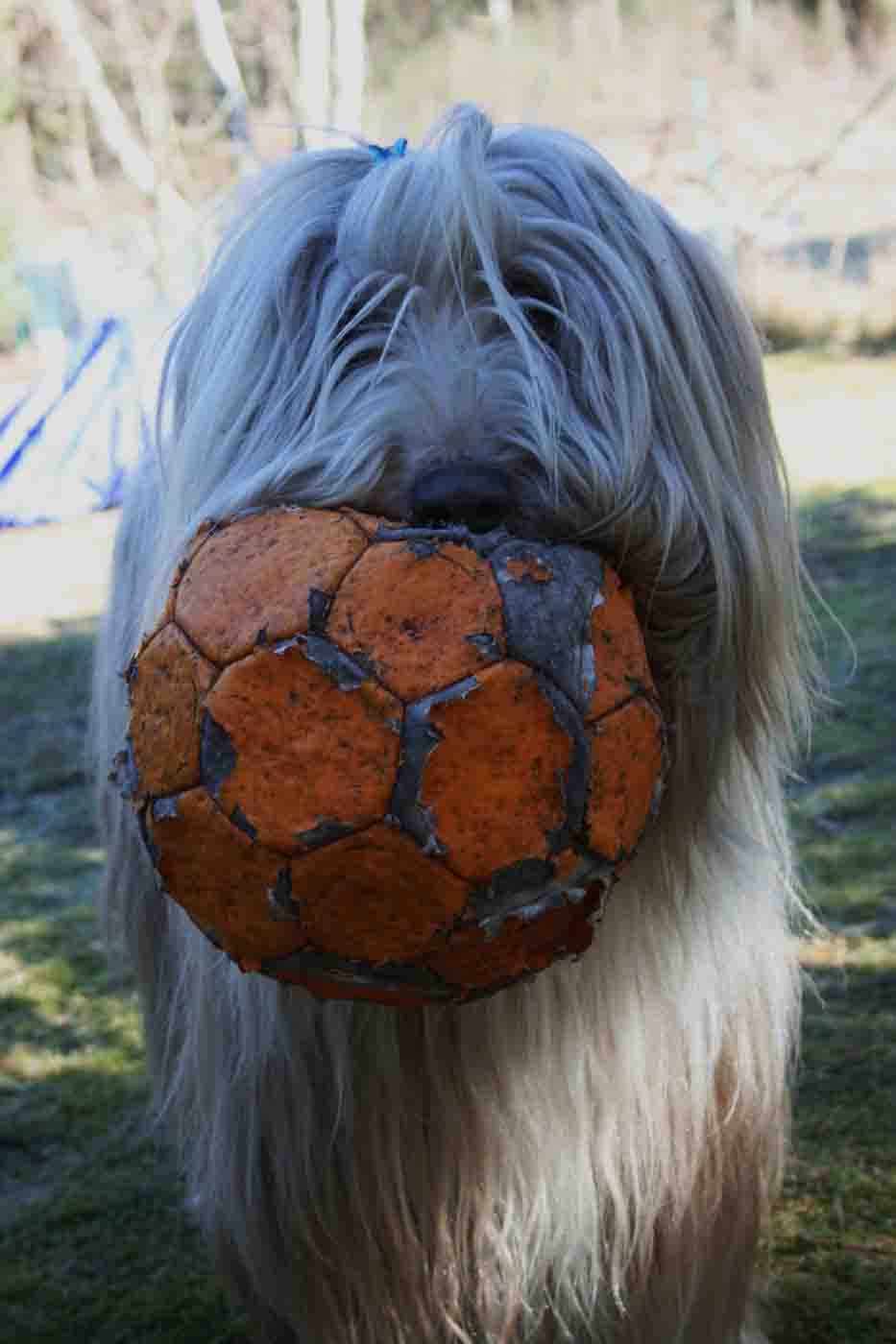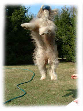 Jeannie is of good health for her almost 10 years. She has become more sedate, but she still has a lot of temperament. "Throw that d....ed ball!"