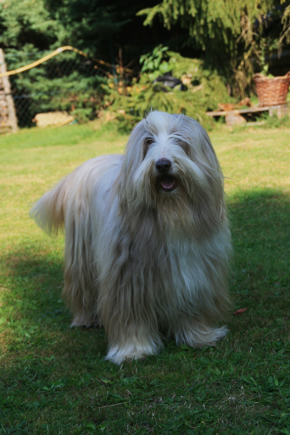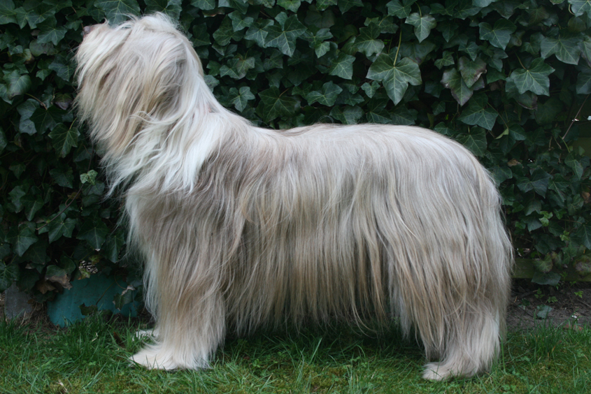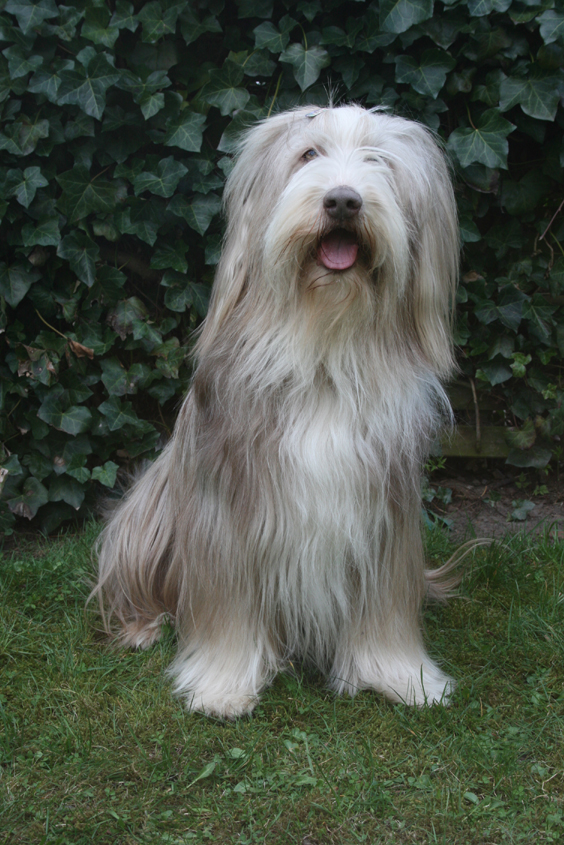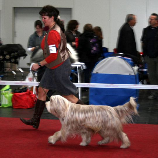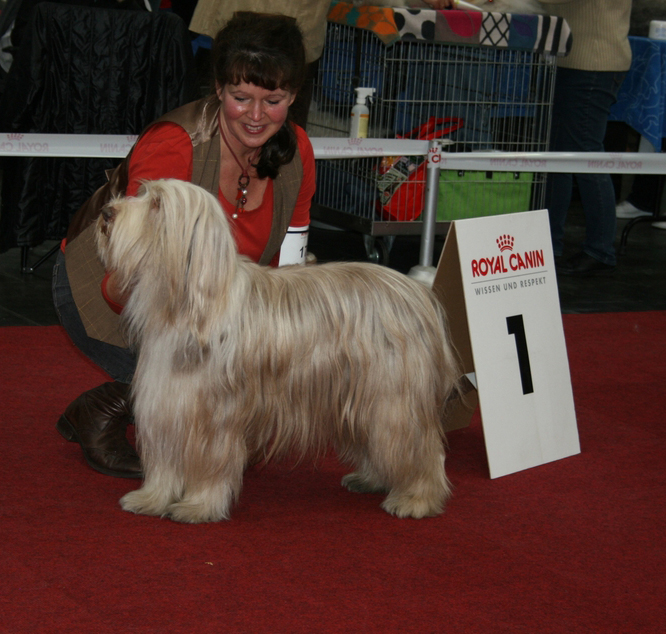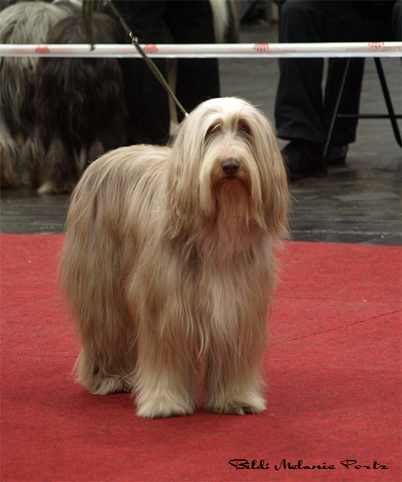 Excellant type and great dimensions, very good head, neck could be a bit longer, very good top-line, good angulation, very good on the move, very good coat.
