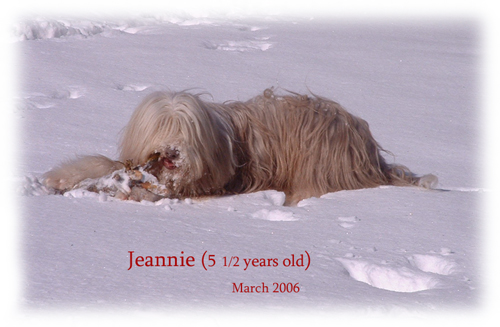 It's downright awesome how well Jeannie is doing in her 14th year of life. She is still full of strength and energy and loves to go "power walking" with me and the other Beards every day....several kilometers, mind you! She has such a wonderful, strong charachter and as she ages, she gets so cuddly! We wish her a few good, happy years with us, yet.